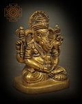 Crafted from brass and finished by hand, the piece carries a warm patina that speaks of quiet age and careful attention to surface. Handcrafted by skilled artisans, the form showcases refined detailing from Ganesha’s calm expression and rounded belly to the dignified grip on the Linga and the graceful fall of his garments. Subtle tool marks and a deliberate, tactile texture reveal the artisanal process while ensuring a timeless, durable presence.