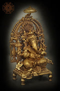 5" Auspicious Lord Ganesha Seated on Majestic Throne | Handmade Brass Statue | Made in India