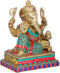 8" Relaxing Ganesha Brass Statue with Inlay Work | Handmade | Made in India