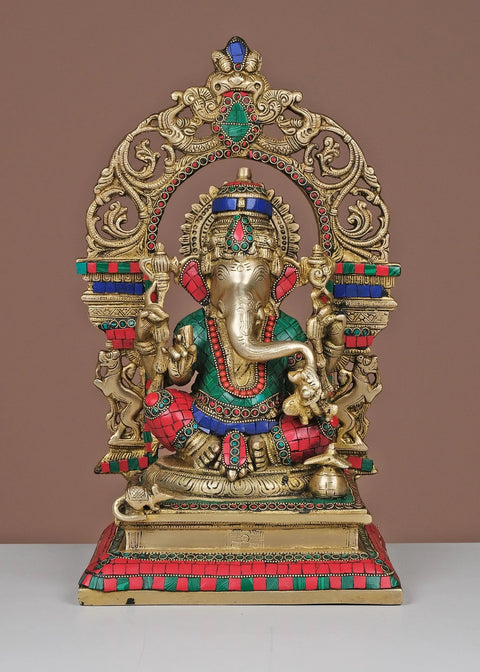 16" Brass Lord Ganesha with Arch | Handmade