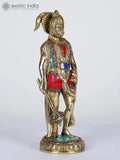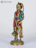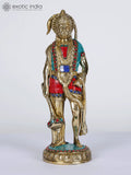 10" Standing Lord Hanuman | Brass Statue with Inlay Work