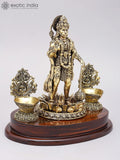 10" Superfine Standing Lord Hanuman in Blessing Gesture with Lamps | Brass Statue on Wood Base