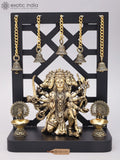 12" Ten Armed Panchamukhi Hanuman Seated on Designer Wood Frame