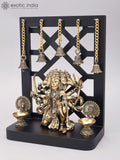 12" Ten Armed Panchamukhi Hanuman Seated on Designer Wood Frame Dimensions