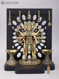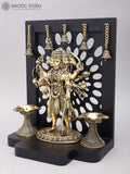 14" Standing Panchamukhi Lord Hanuman with Lamps and Bells | Brass Statue with Wood Frame Dimensions