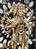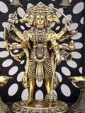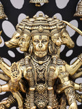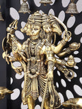 14" Standing Panchamukhi Lord Hanuman with Lamps and Bells | Brass Statue with Wood Frame