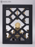 12" Superfine Four Armed Blessing Goddess Lakshmi | Brass Statue with Wood Frame Dimensions