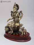 12" Superfine Goddess Lakshmi with wealth Pot | Brass Statue on Wood Base