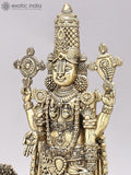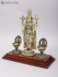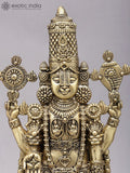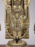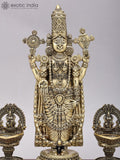 13" Brass Superfine Tirupati Balaji (Venkateshvara) with Goddess Lakshmi Lamps on Wood Base