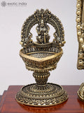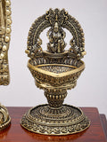 13" Brass Superfine Tirupati Balaji (Venkateshvara) with Goddess Lakshmi Lamps on Wood Base Dimensions