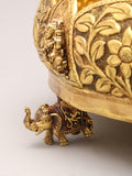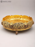 13" Designer Brass Ashtalakshmi Urli with Floral Carving and Elephant Legs