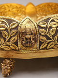 13" Designer Brass Ashtalakshmi Urli with Floral Carving and Elephant Legs Dimensions