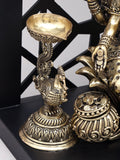14" Superfine Goddess Lakshmi Statue with Wealth Pot | Wood Framed Brass Statue Dimensions