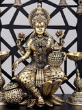 14" Superfine Goddess Lakshmi Statue with Wealth Pot | Wood Framed Brass Statue