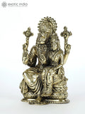 The 4" Small Superfine Sitting Lord Narasimha with Devi Lakshmi Brass Statue is a brass devotional statue, compact enough for personal altars yet rich in traditional iconography. This handcrafted sculpture is designed for intimate spaces, from home temples to shelf displays.