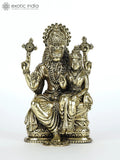 4" Small Superfine Sitting Lord Narasimha with Devi Lakshmi Brass Statue