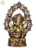 10" Triple-Hued Goddess Saraswati with Aureole of Purna-Ghatas In Brass | Handmade | Made In India