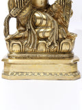 The 10" Veenavadini: Saraswati Playing Veena Brass Statue is a brass statue that depicts Saraswati in the act of playing the veena, a traditional string instrument tied to learning and the arts.