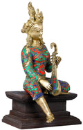 The 14" Devi Saraswati Seated on Wooden Pedestal In Brass | Handmade | Made In India is a brass statue in the devotional sculpture category. Skillfully cast in brass and mounted on a carved wooden pedestal, it presents a graceful, timeless form for sacred spaces.