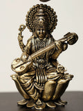 7" Wood Framed Superfine Lakshmi Ganesha Saraswati Statues in Brass | Wall Hanging