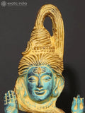 From Exotic India Art, 10" Blue and Gold Modern Blessing Lord Shiva in Brass is a brass statue standing approximately 10 inches tall that presents a contemporary interpretation of Lord Shiva in a blessing pose, designed for sacred spaces and refined décor. This piece blends traditional symbolism with a modern silhouette.