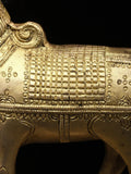 Cast in brass and finished with a warm antique patina, this piece showcases careful handcrafting and refined detailing. Each element, from the horn and hooves to the ornamentation on the chest, is shaped by skilled artisans and finished by hand to bring out subtle textures in the metal.