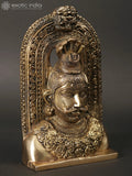 The 8" Lord Shiva Head Idol with Kirtimukha | Brass Statue is a brass sculpture that presents the head of Lord Shiva crowned with the Kirtimukha, crafted for quiet corners, home temples, and refined display.