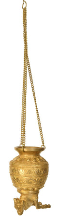 Crafted from high-quality brass, it features a polished finish that highlights the intricate details etched by skilled artisans from Exotic India Art. The design captures the essence of ancient Indian iconography, with precise carvings that reflect traditional motifs, making it a testament to enduring craftsmanship.
