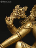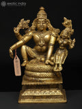 The 6" Small Lord Vishnu Seated with Devi Lakshmi | Brass Statue is a devotional brass sculpture that presents Vishnu seated with Devi Lakshmi in a serene, balanced composition.