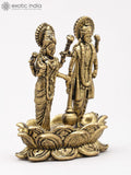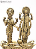 Small Lord Vishnu and Goddess Lakshmi Standing on Lotus (Lakshmi-Narayan) | Copper Statue | Made in India