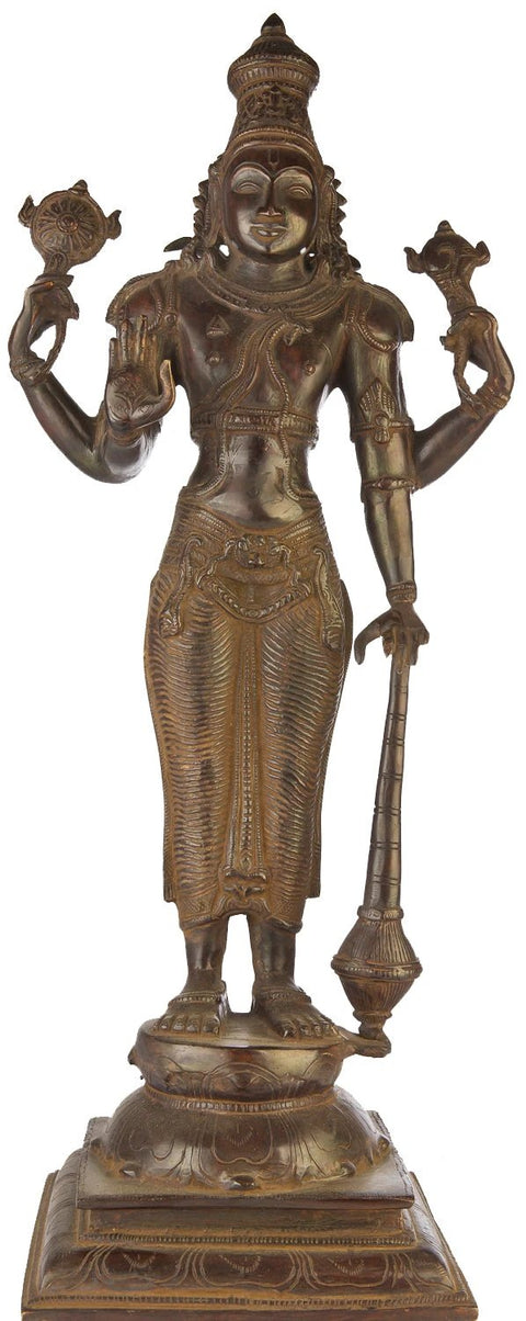 20" Four-Armed Standing Vishnu Brass Sculpture | Handmade | Made in India