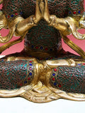 10" Brass Chenrezig with Inlay Work