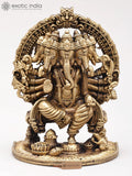 3" Small Ashtabhuja Lord Ganesha with Five Heads Seated on Kirtimukha Throne | Brass Statue | Made in India